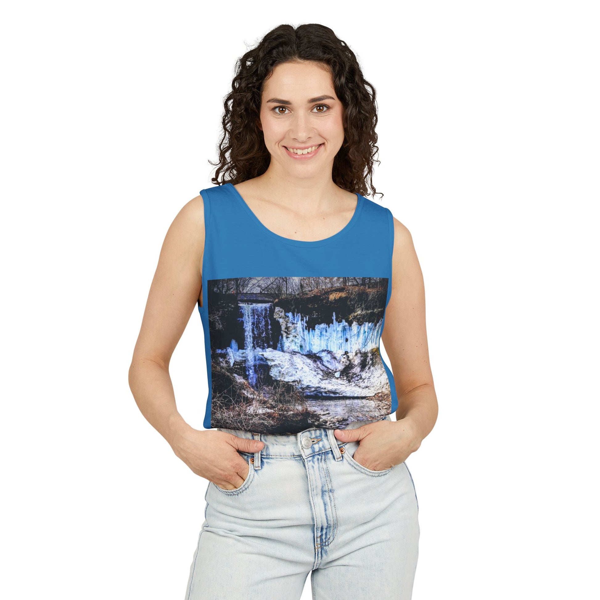 Minnehaha Falls Tank Top, Unisex Summer Tee, Nature Lover's Apparel, Minnesota Souvenir Shirt, Vacation Outfit, Travel Gift